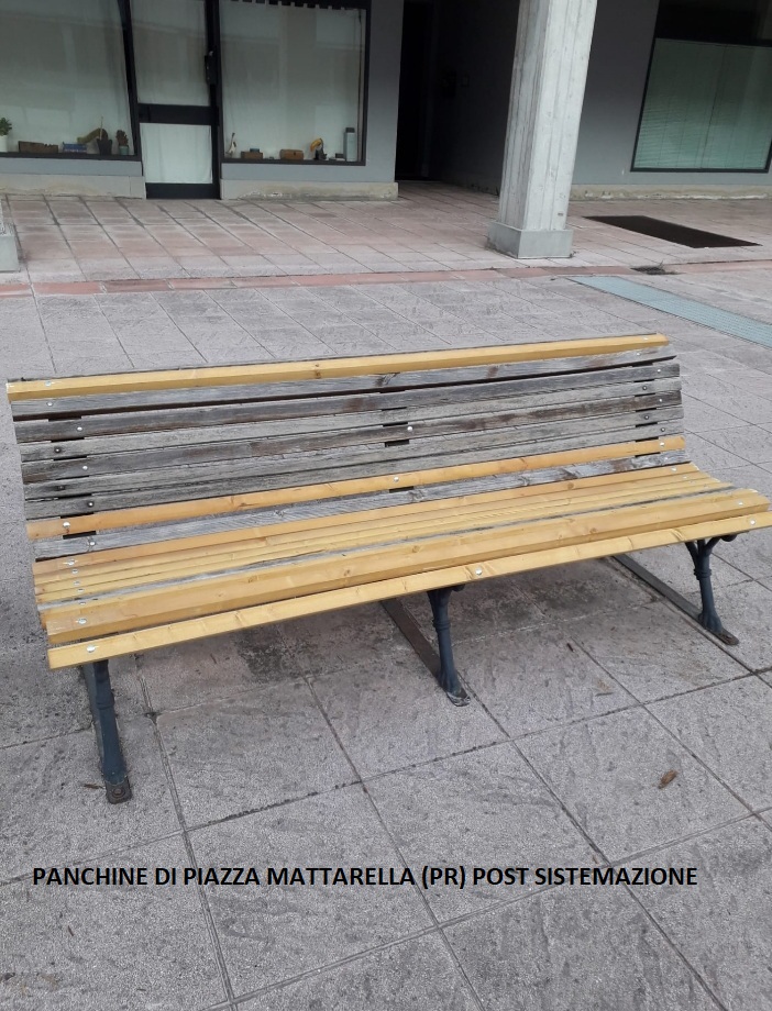 Dopo le numerose segnalazioni di degrado della piazza, pubblicate anche sulla Gazzetta di Parma in data 13 agosto 2020 (si veda questo link), lo scorso 19 agosto alcuni tecnici del Comune di Parma sono intervenuti per sistemare le panchine. Le assi in legno di alcune sedute sono state sostituite da alcune di nuova fabbricazione. Le stanghe ritenute ancora “sane” sono state lasciate. Il risultato ottenuto è stato quello di avere delle panchine di due colori (le assi nuova erano infatti molto più chiare di quelle già presenti). Sicuramente si è trattato di un lavoro “al risparmio”, certamente non bello dal punto di vista estetico ma comunque funzionale.