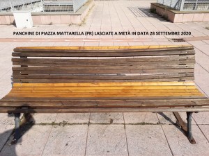 Una settimana fa ho scritto al sindaco di Parma, Federico Pizzarotti, e all’assessore ai lavori pubblici, Michele Alinovi, per avere spiegazioni sul mancato completamento dei lavori di sistemazione di 8 panchine in Piazzale Mattarella, luogo pubblico d’incontro per famiglie e area di gioco per molti bambini. Mi sembrava giusto chiedere chiarimenti considerando che i lavori sono iniziati lo scorso agosto e, dopo più di un mese, non sono ancora completati. Alla mia richiesta non è stata data risposta per cui ho deciso di rendere pubblica questa vicenda nella speranza che si possa risolvere in breve tempo.
