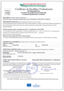 Certificato di Qualifica Tecnico nella Pianificazione del ciclo integrato dei Rifiuti Urbani – giugno 2011